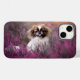 Esta fotógrafa Getty Images apresenta um cachorrinho de raça pekingense sentado em flores cor-de-rosa.