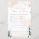 Previsão de bebês e jogo de aconselhamento no tema do inverno com pinheiros e flocos de neve.