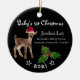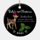 Um veado adorável num chapéu de Papai Noel. Personalize com o nome do bebê e informações de aniversário no Natal de 1rua deste bebê!
