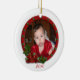 Bebês Primeiro ornamento de Natal com flores tradicionais e design de coroa vermelha. O texto é totalmente personalizável. Adicione suas informações ou altere-as completamente. Modelo pode ser usado em qualquer foto de Natal. Simplesmente mude o texto para atender às suas necessidades.