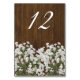 Placa de número de tabela chic achatada, em estilo chic, feita em um olhar de madeira escura, com gráficos da respiração do bebê branco ao longo da parte inferior. O número personalizado da tabela branca está pronto para personalizar cada mesa na sua recepção. Os produtos de casamento correspondentes estão disponíveis.