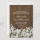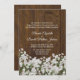 Convite de casamento rápido feito em um olhar de madeira escura com gráficos de flores do hálito do bebê branco, ao longo do fundo. Personalize todo o texto para o seu dia especial. É um belo convite que você vai gostar por anos.