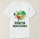 Características de design do bebendo do dia deste St Patrick engraçado um leprechaun de vista parvo com uma barba vermelha grande vestida no verde e em guardarar um vidro da cerveja em uma mão e em um trevo grande na outra mão, e bebida do subtítulo até que você for verde.
