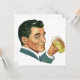 Imagem de ilustração vintage de bebidas e drinks com um homem solteiro sorrindo e bebendo um coquetel sobre pedras, sobre gelo, em uma festa. Saúde! Diversão clássica retrô dos anos 50!