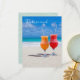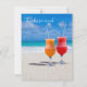 Cartões-postais simples em branco com agradecimento por drinques na praia. Dois coquetéis tropicais estão em uma praia ensolarada com água turquesa ao fundo. A escrita branca é fácil de mudar ou excluir. O verso contém uma imagem de água ao fundo, mas não tem texto. Este cartãozinho é perfeito para uso pessoal ou para ser enviado por um casal de recém-casados. Escolha qualquer tamanho - verifique se o design se ajusta corretamente - e atualize para um papel especial se desejar.