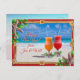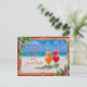 Duas bebidas na areia, Natal tropical ou Anos novos saudando cartão postal com texto personalizado de ambos os lados. Dois coquetéis gelados, decorados com estrelas-do-mar e sagrados, sentam-se sobre areia lisa na borda de um mar tropical. Adicione sua mensagem / saudação em fontes de sombra vermelha - este design é perfeito para enviar de um casal. A imagem e o texto são bordados por uma estrutura de corda com nós decorada com estrelas-do-mar. Digite endereços individuais na parte traseira para enviar e-mails ou exclua esse texto de amostra para solicitar o vazio. Temos este design em versões dobradas e achatadas também.