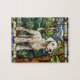 Quebra-cabeça divertido com um Cachorro Terrier Bedlington criado artisticamente em um modo de janela de vidro manchado.