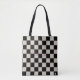 Personalized beige and black checkered tote bag. Add your name or other test at the personalized prompt. Be sure to fill in or blank out both text boxes. Designed for you by HAMbyWhiteGlove. Note: Gray color can be changed, just personalize.