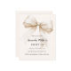 Um bege macio, fundo colorido creme, decorado com um arco grande. Personalize e adicione um nome e detalhes da parte. 1 folha = 1 convite impresso de borda a borda.