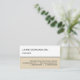 Este cartão de visita minimalista apresenta um nome, profissão e informações de contato que podem ser personalizadas. Parte do fundo frontal é branco colorido e parte é bege colorido. Cartões de visitas como estes podem ser usados por um profissional como arquiteto, advogado ou consultor.