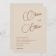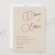 Convites de casamento em cores naturais de bege e terracota, com uma mistura de diferentes estilos de fonte, muitas vezes em diferentes tamanhos, para criar um olhar único e eclético que faz da estética natural desses convites.