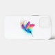 Beija-flor exótico brilhante e iridescente voando sobre um fundo branco, pintado com tinta aquarela multicolorida. Beija-flor arco-íris.
