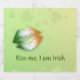 Rua. Ilustração do Dia de Patrick: lábios na cor da bandeira nacional da Irlanda - verde, branco, laranja - sobre um fundo claro com vergonhas e o texto "Beije-me, sou Irlandês".