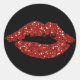 Beijo vermelho brilhante nos adesivos pretos de fu