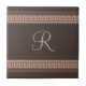 Design do ornamento da beira da chave do grego elegante, clássico do meandro com monograma e decoração geométrica das listras no fundo do marrom escuro. Grande ideia para aniversários, Natal do presente ou para surpreender apenas seu amado. É fácil personalizá-lo e mudar a cor do fundo para adicionar o diferente ao design com sua escolha.