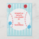 Este cartão poste de baseball divertido é perfeito para enviar um obrigado para os seus convidados por vir. O cartão-postal tem um padrão de taco de beisebol no fundo e balões no primeiro plano.