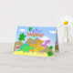 Bela Caricatura Dinossauros Feliz Cartão de Aniversário. Cinco pequenos dinossauros cartoons bonitos: ovo dino rosa, Stegossauro verde, Diplodocus laranja, Tricerátops amarelos e T-Rex Tyrannosaurus Rex púrpura numa paisagem feliz pré-histórica de idade da pedra com palmeiras, montanhas e vulcão e estrelas caindo com o texto "Parabéns". Dentro o cartão de todos os dinossauros partidários em uma paisagem com texto personalizável "Tenha um dia dinotástico EXCELENTE!" Adicione seu texto pessoal! Personalize com suas imagens e textos! Um doce cartão de animação para cartões de aniversários para um pequeno ou grande fã de dinossauros!