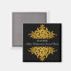 Bonito barroco desenhava Imã salve a data. O adorável design barroco amarelo ouro se destaca nesse fundo negro e se divide no meio, como uma área de texto para a data e noiva e nomes de noivas. Um lembrete de excelente para toda a sua família e amigos. Personalize com sua data e nomes de casamento.