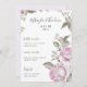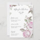 Lindos Rosas de Molas Moles de Água Púrpura Floral Blooms Florais e Nomes de Noiva e de Noivo em Bonito Script com Menu de Casamento Púrpura Pálido.
