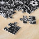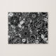Belezas Botânicas Quebra-cabeça Black and White Jigsee - é um design de arte gráfica. Um impressão de fundo de várias folhas de flores; pontos e espirais. As flores estão em muitos tamanhos diferentes, do muito grande até apenas pequenos pontos. As flores e folhas botânicas são todas impressas em branco sobre fundo de cor sólida. É um design divertido e caprichoso perfeito para aqueles que adoram flores e jardins. Este impressão botânico está disponível em várias cores.
