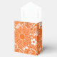 Belas Botânicas Orange RIBBON FAVOR BOX- é um design de arte gráfica. Um impressão de fundo de várias folhas de flores; pontos e espirais. As flores estão em muitos tamanhos diferentes, do muito grande até apenas pequenos pontos. As flores e folhas botânicas são todas impressas em branco sobre fundo de cor sólida. É um design divertido e caprichoso perfeito para aqueles que adoram flores e jardins. Este impressão botânico está disponível em várias cores.