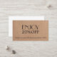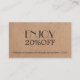Modelo de cartão de desconto perfeitamente personalizável para salão de beleza (cabelo, maquiagem, prego, massagem). Design mínimo com fundo de papel kraft impresso e texto em negrito. Ferramenta perfeita de marketing para recompensar os melhores ou os novos clientes.