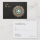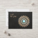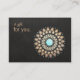 A ilustração vetorial da mandala dourada inspirou um motivo na imagem digital de fundo de linho preto. Ilustração original de Maura Reed. Um cartão de cupão de promocional elegante, versátil, adequado para muitas profissões de medicina holística e alternativo, bem como para profissões de beleza e moda.