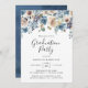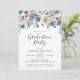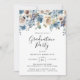 Nossos incríveis convites à festa de formatura de Bela Sanguinela apresentam uma borda floral de flores brancas e azuis, verde-luxuoso e uma fonte moderna de caligrafia. O verso do convite apresenta um fundo de cor azul profunda. Personalize os convites de graduação floral adicionando o nome do formando e os detalhes da festa de um convite que impressionará seus convidados.