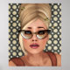 This is a fun female portrait featuring a very sassy girl wearing cats eye glasses and sporting a glamourous beehive hairstyle which seems to be attracting a lot of attention! The little buzzing bees and vintage spotted backdrop add the finishing touches to this pop art style design. A great gift idea for those into hair and beauty, retro fashion styles or just love the humor.