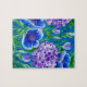 Quebra-cabeça Floral de Bellisima Art apresenta hydrangeas em um motivo de jardim em azul, roxo e verde