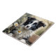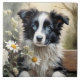 Grande azulejo cerâmico com um adorável cão collie na borda, cercado por flores.