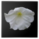 Este incrível azulejo apresenta uma foto incrivelmente bela de um conjunto de flores brancas de petúnia contra um fundo preto para produzir um fascinante contraste.