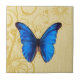 Design de uma linda, grande, borboleta azul-monarca à meia-noite contra um fundo floral vintage. Esta design de arte mostra a cor vibrante natural da borboleta e tem a sensação retrorativa de vintagem.