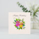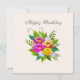 Buquê de flores coloridas e lindas na moda em cartão de aniversário marfim. Flores em tons rosa, dourado rosa e amarelo. O texto pode ser personalizado.