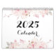 Calendário anual 2025 com belas ilustrações de rosas com texto modificável no cobrir e a cada mês dentro do calendário.