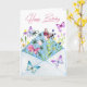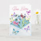 Cartão de Aniversário impressionante com flores de aquarela e borboletas a explodir de um envelope. Vazio esquerdo no dentro para que você possa escrever sua própria mensagem sincera.
