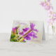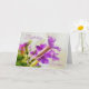 Arte original com minha fotografia original de flores roxas de Mandevilla, estilada com uma técnica de pintura aquosa para uma aparência artística. A frente do cartão diz "Desejos de Aniversário" e a dentro do cartão diz "Pensando em você no seu dia especial e desejando muita felicidade sempre! Feliz aniversário!" Um cartão de excelente para qualquer amante de flores.