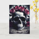 Uma pintura escura e gótica de um crânio humano rodeado por rosas e pétalas góticas pidas, apresentando uma atmosfera gótica dessaturada e de outro mundo, este cartão de aniversário é perfeito para amantes de crânios góticos escuros e flores e rosas góticos românticos escuros, dando uma única mensagem de aniversário com esta única Linda Noite Negra e Gótica do Crânio Rosa Cartão de dia concluído com texto e imagens editáveis, personalize de acordo com as suas necessidades.