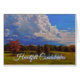 Belo Cartão de condolências Memorial Lembrança, espantosas formações em nuvem dominam o céu nesta linda cena de fazenda com cores de outono nas árvores e no lago. Design de uma pintura de óleo original do artista profissional Daniel Fishback. Esperamos que este cartão lhe dê alguma paz neste momento difícil.