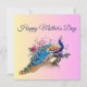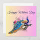 O cartão de Dia de as mães quadrado apresenta belos pavões e composições florais com fundo de gradiente pastel. O sentimento de "Dia de as mães feliz" pode ser personalizado ou deixado como. Disponível como cartão impresso e como download instantâneo!