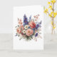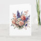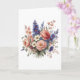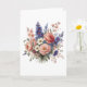 Um adorável cartão dobrado do Dia das Mães com um buquê floral elegante em cores pastéis suaves.