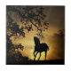 Um presente de excelente para o amante dos cavalos, este azulejo tem um cavalo silenciado correndo ao pôr do sol enquadrado por carvalhos.
