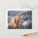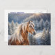 Um cartão postal de Natal bonito com um belo cavalo na neve.