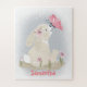 Belo coelhinho e borboleta. Quebra-cabeça de serra