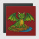 Lindo dragão verde bordado sentado em uma rocha. Por favor, note que não é um bordado, mas uma imagem de um dragão bordado.