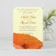 Orange Coral Poppy Wedding Invitation é mostrado com uma cor de fundo amarelo pálido, mas você pode facilmente mudar para nenhum fundo para mostrar apenas a textura da papelaria de casamento ou escolher qualquer cor personalizada para corresponder ao seu esquema de casamento.
