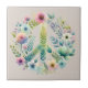 Belo Floral dos anos 70 com o azulejo de cerâmica com Sinal de Paz Retroativo. Este azulejo apresenta um espantoso design floral retrógrado, intricadamente rodeando um grande e ousado sinal de paz em seu centro. As flores vibrantes e inspiradas na safra são organizadas em uma mistura harmoniosa de cores. Perfeito para aqueles que abraçam o estilo e uma bela mistura de estética sutil e vibrações positivas.