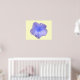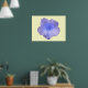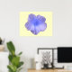 Este impressão apresenta uma fotografia de uma flor de Nasturtium. A fotografia foi colorida artificialmente, resultando numa flor pálida, de cor azul, atordoante, com tintas brancas e púrpuras claras. O fundo é uma cor amarelo-sol pálida.
