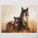 Bonito mustang mare e foal pintura digital em tons de terra.