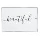 Belo está escrito de um lado em tipografia minúscula preta elegante contra fundo branco. Personalize NOME no verso entre símbolos especiais em caixa para manter as extremidades em script. Agradável sozinho ou como decoração de cama para casal. Visite minha loja para encontrar almofada de nome masculino bonito correspondente. Clique em personalizar para aumentar/diminuir o tamanho do nome. Designs originais por TamiraZDesigns.